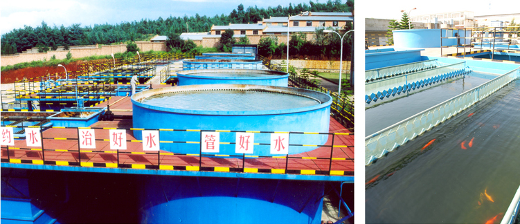 It treats domestic sewage, by biological contact oxidation, to meet the requirement of Urban Sewage Reuse, Urban Miscellaneous Water Standard GB/T18920-2002. All treated water is used in plant as cooling water in production, flushing water in bathrooms, and for green belt sprinkling. Therefore, fresh water use will be reduced 450 thousand cubic meters annually.